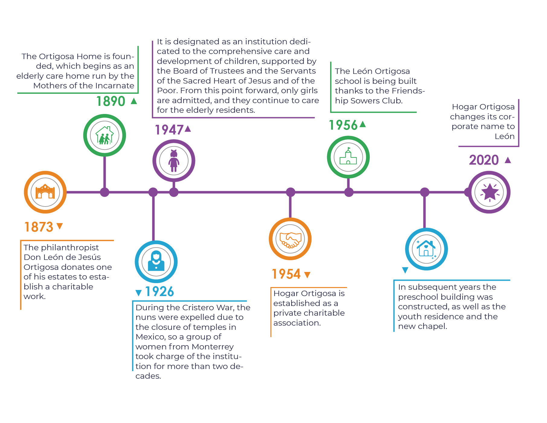 Acting as his executor, Valentín Rivero fulfilled Don León's wishes by establishing a nursing home for the elderly, run by the Mothers of the Incarnate Word, officially opening its doors in 1889. In the 1920s, the country was engulfed in a new violent movement called the "Cristero War," whose greatest impact on this institution was the expulsion of the nuns who ran it. Despite this, it was decided that the Ortigosa would not close, and a group of women selflessly accepted the challenge of managing it took over.